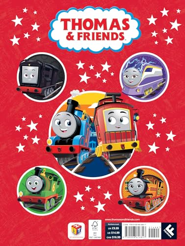 Details: Ideal purchase for young fans of Thomas & Friends Farshore are the #1 annuals publisher in the UK (Bookscan TCM 2023) Let’s race into action with the Thomas & Friends Annual 2025! Featuring all your favourite engines including Thomas, Percy, Diesel, Nia, Kana and Bruno, there’s loads of fun content to entertain all Thomas fans including exciting stories, a boardgame, odd ones out, memory games, matching pairs, dot-to-dots, a timed challenge, tracing activities, spot the differences, follow the lines, profiles and lots of colouring, counting and early learning concepts fun. It includes four great all-action stories: The Christmas Mountain Bells are Ringing The Great Bubbly Build Ashima’s Amazing Arrival Look out for other great Thomas & Friends storybooks and board books available in bookshops, supermarkets, toy shops and online now. Thomas has been teaching children lessons about life and friendship for over 75 years. He ranks alongside other beloved characters such as Paddington Bear, Winnie-the-Pooh and Peter Rabbit as an essential part of our literary heritage.